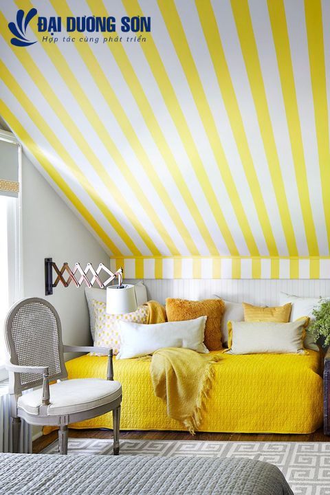 Luôn luôn là một ý kiến hay khi tham khảo bánh xe màu ở mỗi bước của quá trình trang trí. Biết được màu nào bổ sung cho nhau sẽ giúp mọi thứ dễ dàng hơn, từ lý tưởng đến mua sắm, và tất nhiên, sống trong kết quả cuối cùng. Một ví dụ điển hình về một công việc được hoàn thành tốt? Phòng ngủ màu xám và vàng này được thiết kế bởi Juan Carretero. Không còn nghi ngờ gì nữa, màu vàng tượng trưng cho sự cổ vũ, vì vậy nếu bạn muốn lan tỏa sự ấm áp và tràn đầy năng lượng thì đây là màu dành cho bạn. Bạn sẽ thích cách trần nhà sọc sáng mang lại yếu tố vui tươi hơn cho phòng khách truyền thống hơn.