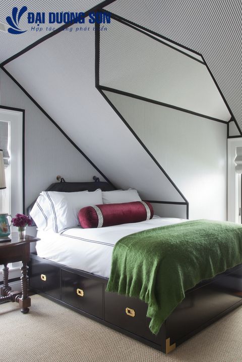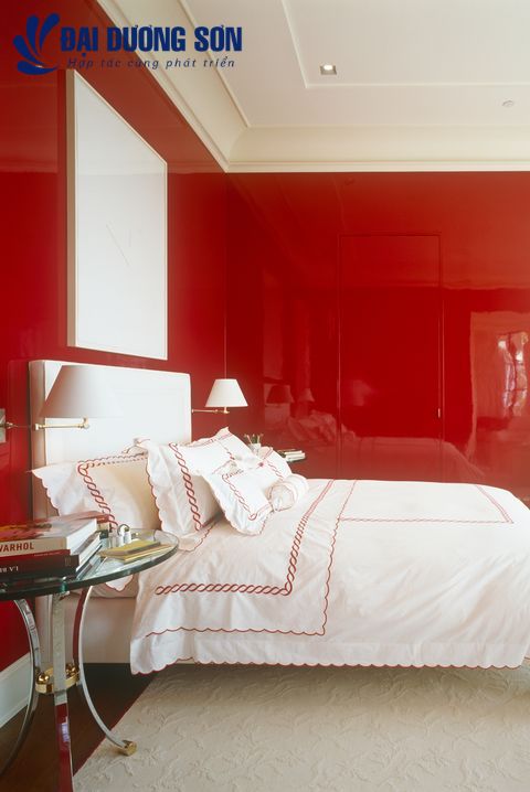 Năng lượng cao nhưng êm dịu, táo bạo nhưng vượt thời gian, phòng ngủ ấn tượng do Brian J. McCarthy thiết kế này là những mục tiêu nghiêm túc. Để có hiệu ứng tương tự, hãy gắn bó với một câu chuyện hai màu chặt chẽ với các bức tường bằng sơn bóng siêu cao cấp và trần nhà bằng sơn trắng phẳng. "Lớp hoàn thiện này tạo cảm giác tươi mới cho một căn phòng dành cho khách và màu sắc nổi bật đáng ngạc nhiên vừa ấm áp vừa sang trọng", anh nói.