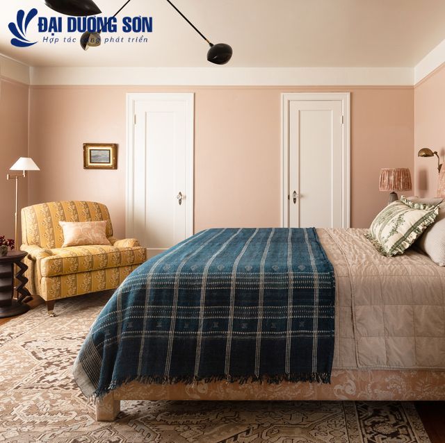 Ai nói màu be là nhàm chán? Đáng tin cậy, linh hoạt, ấm áp và tinh tế, đây là một trong những màu sơn tốt nhất cho phòng ngủ. Bóng râm siêu nhẹ sẽ tương phản vừa đủ với nội thất sáng rõ nét trong khi cũng tạo chút ấm áp cho không gian. Nó cũng gợi nhớ đến những chuyến đi bộ dài trên bãi biển đầy cát trắng. Thêm màu sắc tươi vui với đồ trang trí và gối ném.