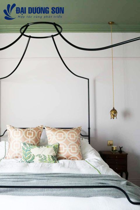 Thay vì sơn tường của bạn, hãy thêm một trần nhà trong phòng ngủ, như bộ đôi thiết kế tại 2LG Studio đã làm ở đây. Nó thu hút ánh nhìn và giữ cho mọi thứ thú vị. Bóng râm của màu xanh lá cây xô thơm này cũng là một màu sắc đáng yêu, đồng thời mang lại cảm giác dễ chịu, bình tĩnh và vui vẻ.