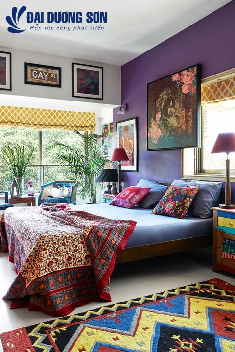 Các biện pháp xử lý bằng cửa sổ sẽ giúp phòng ngủ thoải mái hơn cho những người lười biếng vào buổi sáng, nhưng nếu căn phòng của bạn quá sáng, thì một mảng màu tím hoàng gia đậm trên một bức tường nổi bật như Krsnaa Mehta đã làm ở đây sẽ giúp hấp thụ ánh sáng trong khi vẫn tăng thêm tính cách sôi động.