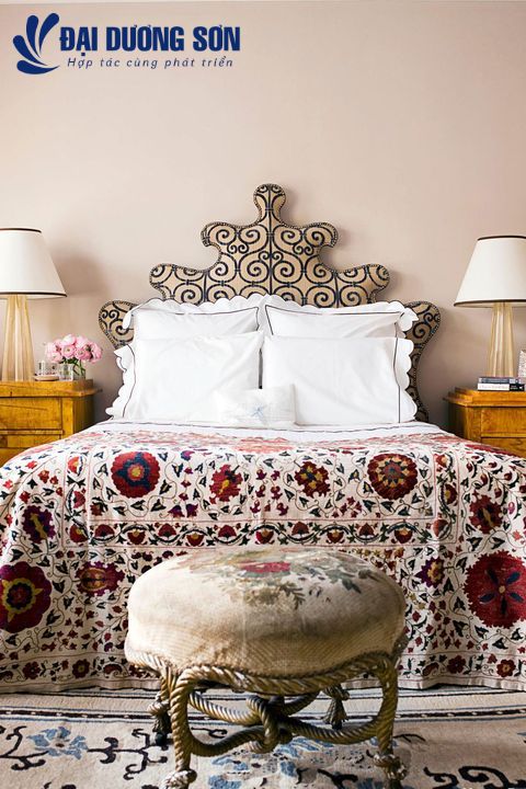 Nếu phòng ngủ kỳ lạ này không khiến bạn đỏ mặt, chúng tôi không biết điều gì sẽ xảy ra. "Cực kỳ nữ tính nhưng vẫn sang trọng" là phương châm của nhà thiết kế Jonathan Berger khi trang trí ngôi nhà phố ở Brooklyn này. Berger đã tìm thấy chiếc suzani trên eBay, trong khi và tấm đầu giường cong lấy cảm hứng từ Venice được bao phủ bởi Nouvelle Orleans, một tấm nhung cắt từ Clarence House trông giống như đồ sắt nhưng tất nhiên, mềm hơn nhiều khi chạm vào. Chiếc ghế đẩu bằng dây thừng của Napoléon III cổ được bao phủ trong một tấm thảm Aubusson tạo thêm cảm giác sang trọng của đồng quê Pháp để đóng dấu giao dịch.