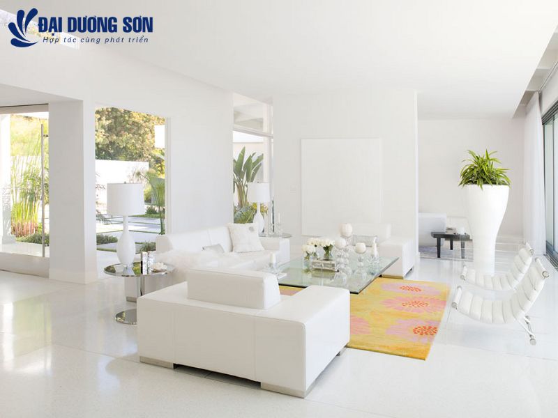 Chọn sắc trắng làm màu sơn phòng khách đẹp trang nhã, hợp phong thủy theo mệnh tuổi gia chủ