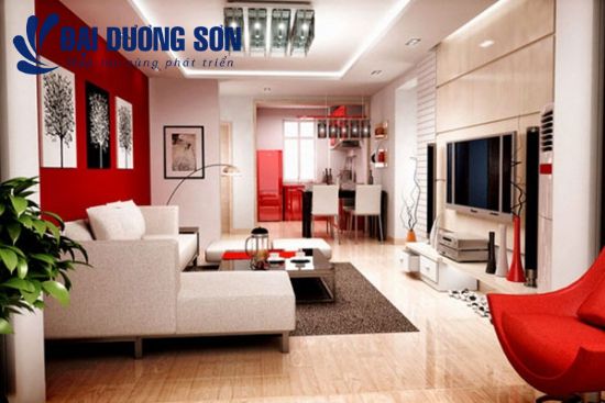 Phối màu sơn tường đỏ đô cho phòng khách đẹp quý phái