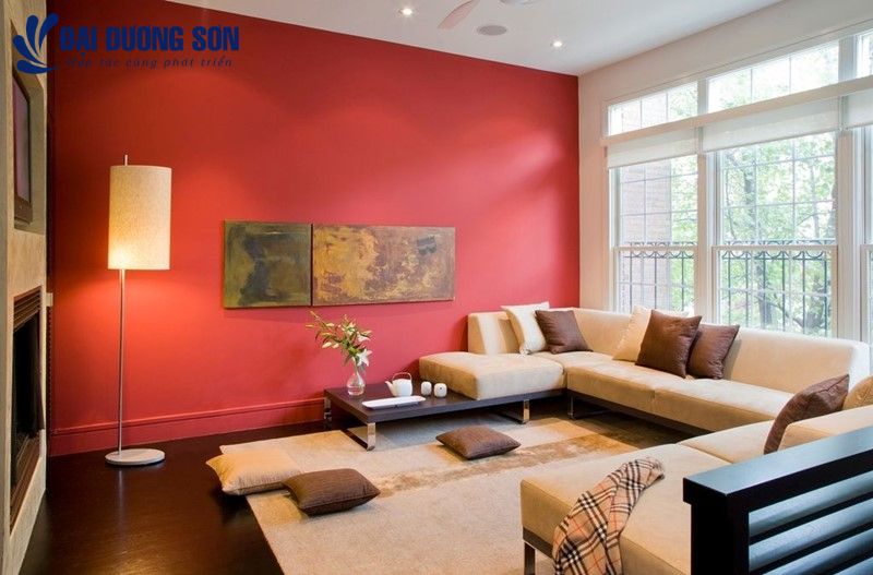 Màu bản mệnh của Hỏa là các màu: hồng, đỏ, tím hồng, đỏ sẫm,... nên gia chủ mệnh Hỏa có thể sơn phòng khách với những màu bản mệnh. Tuy nhiên những gam màu của Hỏa khá nóng nên khi sơn phòng khách gia chủ chỉ sơn gam màu nóng cho 1 bức tường chủ đạo và kết hợp hài hòa với những màu khác.