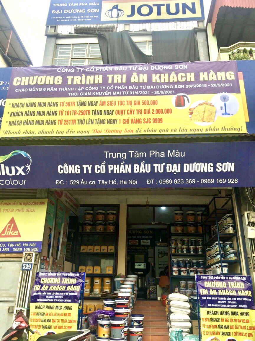 - Nhân dịp kỷ niệm 6 năm thành lập Công ty cổ phần Đầu tư ĐẠI DƯƠNG SƠN (26/5/2015 - 26/5/2021). Công ty triển khai trương trình "Tri ân khách hàng" tại những địa chỉ: