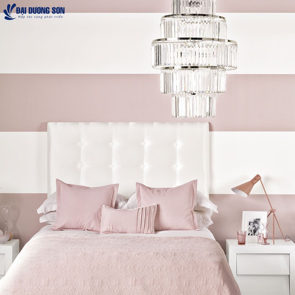 Tạo một chậu hoa tinh vi với một bóng hồng đã trưởng thành. Màu hồng nude tinh tế là một sắc thái thanh lịch, hoàn hảo cho cảm giác lãng mạn. Tông màu be cơ bản của nó ngăn không cho nó quá nữ tính - làm cho nó trở nên hiện đại bằng cách kết hợp nó với màu trắng tươi trên đồ nội thất và tường. Các đường sọc rộng trên tường tạo thêm tác động cho thị giác và cũng giúp giữ cân bằng màu sắc vừa phải sao cho gần như nửa trắng và nửa hồng khắp căn phòng. Hãy giữ lại họa tiết đậm, nhưng hãy thêm họa tiết tinh tế với khăn trải giường Jacquard và đầu giường có cúc quá khổ để mang lại cảm giác sang trọng, lôi cuốn. Đồng là một bổ sung tuyệt vời cho màu hồng phấn, như chiếc đèn ba chân mát mẻ cho thấy. Một chiếc đèn chùm rõ ràng làm tăng thêm vẻ quyến rũ mà không làm gián đoạn việc phối màu.