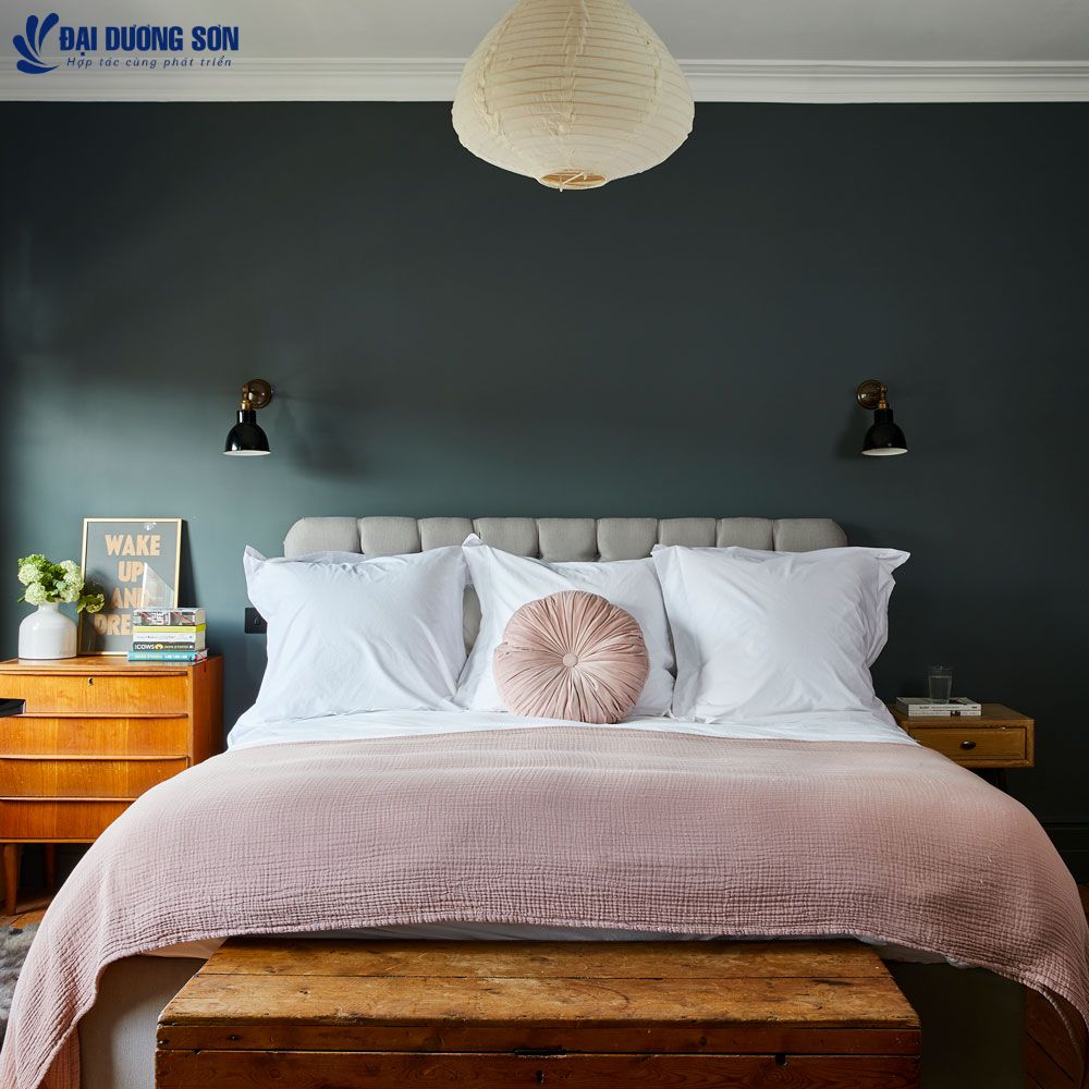 Nếu con mắt thiết kế của bạn tự nhiên bị thu hút bởi một bảng màu trung tính cho phòng ngủ, hãy lắc mọi thứ lên một chút với màu xanh lam-xanh lá cây rực rỡ. Sử dụng một màu xanh lá cây hoặc mòng két thanh lịch, phong phú trên các bức tường trong phòng ngủ của bạn để ngay lập tức tiếp thêm sinh lực cho không gian. Tuy màu sắc nổi bật nhưng không quá chói nên nó vẫn có khả năng làm ấm không gian và tạo cảm giác ấm cúng như kén.