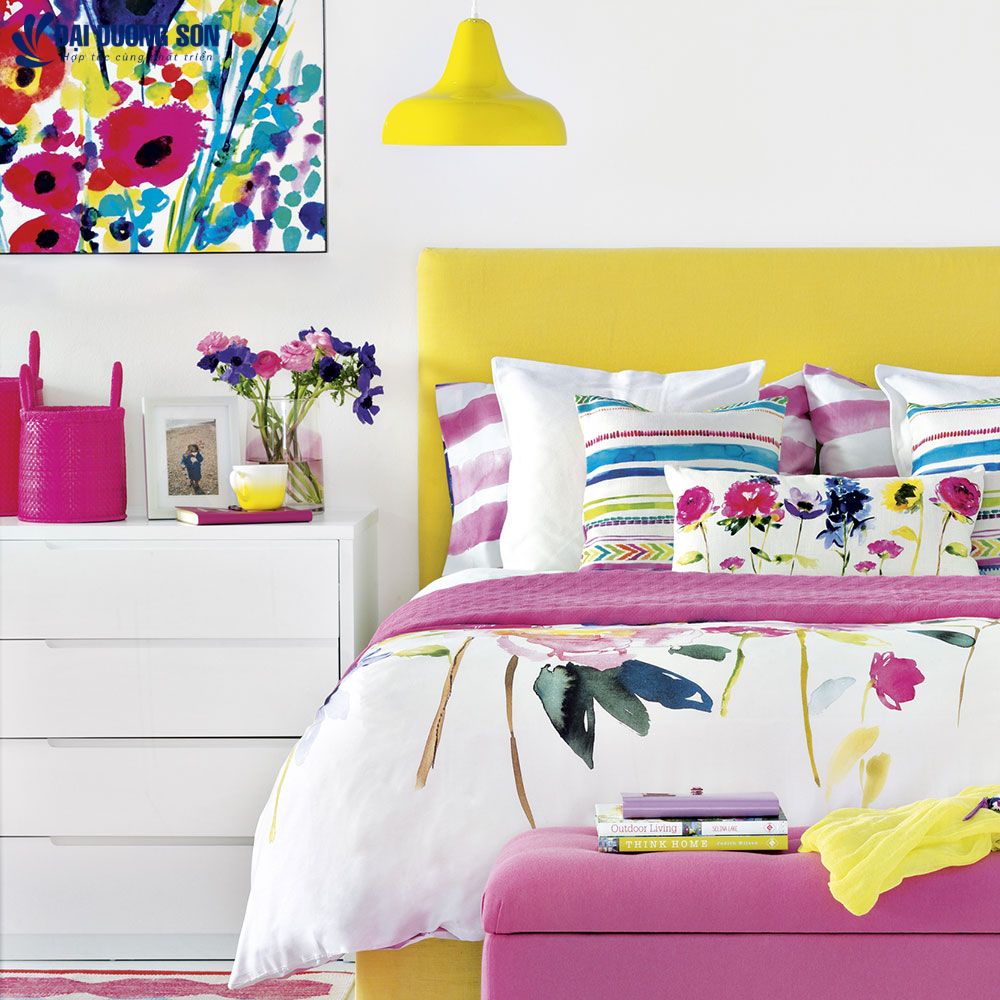 Thêm một số màu đậm vào phòng ngủ của bạn để làm nổi bật lên một chút. Nó không chỉ là việc tô điểm một số màu trong phòng ngủ của bạn, mà đó là cách bạn sử dụng nó có ý nghĩa quan trọng. Sử dụng căn phòng này làm nguồn cảm hứng của bạn và sử dụng sự kết hợp nổi bật nhưng bất ngờ và giàu trí tưởng tượng giữa màu vàng và màu hồng để tạo ra một kế hoạch mạnh mẽ trông bất cứ thứ gì nhưng buồn tẻ. Đặt nó trên nền trắng để bảng màu táo bạo thổi sức sống vào một sơ đồ trung tính.