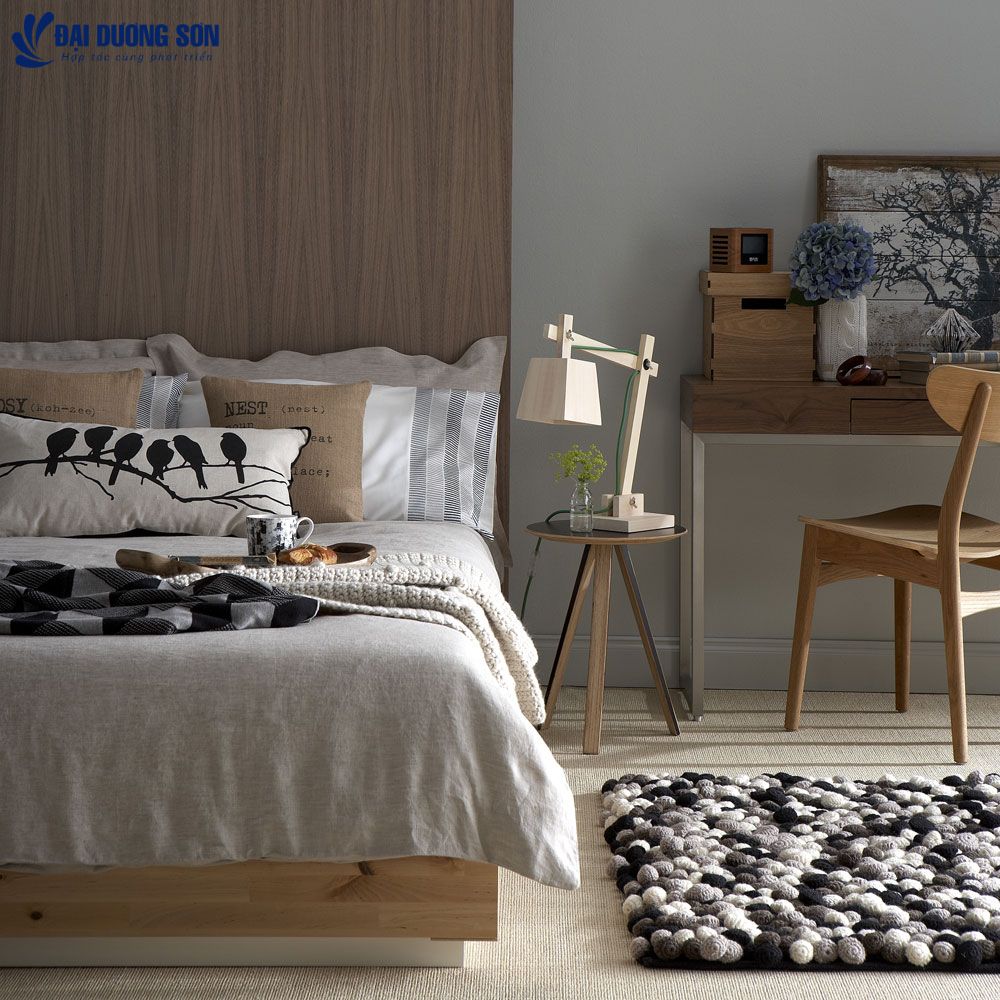 Trải giường bằng khăn trải giường bằng vải lanh tự nhiên, vải dệt kim và đệm xúc giác để nó trông hấp dẫn và tạo cảm giác ấm cúng. Trộn các loại gỗ hoàn thiện như gỗ sồi và bạch dương cho đồ nội thất và phụ kiện phòng ngủ - các loại gỗ có tông màu trung bình như thế này hoạt động tự nhiên với nhau.
