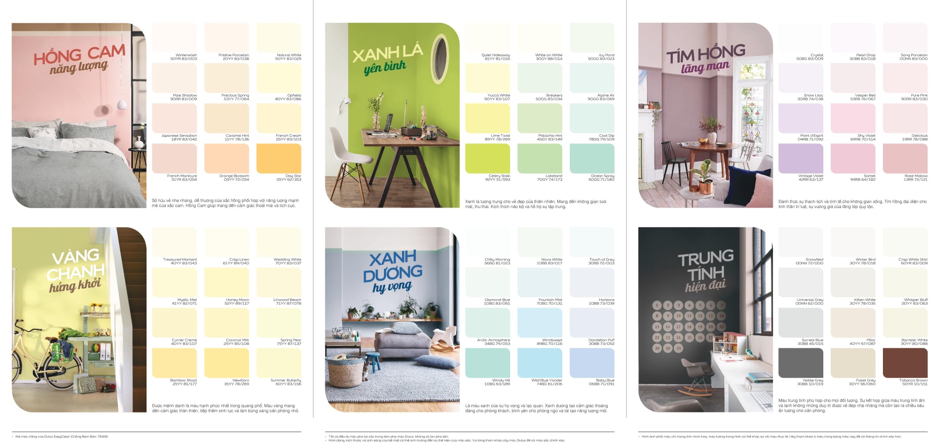 Sơn Dulux easyclean chống bám bẩn, kháng Virus E017B có hơn 2000 màu sơn, đáp ứng được các nhu cầu về phong cách phối màu cho các công trình. Bạn có thể lựa chọn những màu sơn đẹp và phối màu một cách tinh tế và khoa học theo bí quyết dưới đây: