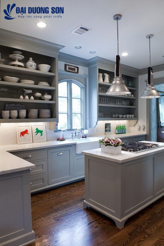 Sự kết hợp màu xanh lam và xám vượt thời gian đã có từ nhiều thế hệ. Sự rung cảm mát mẻ là trung tính vì nó là tuyệt đẹp. Đây là một trong những cách phối màu nhà bếp sẽ sớm biến mất.