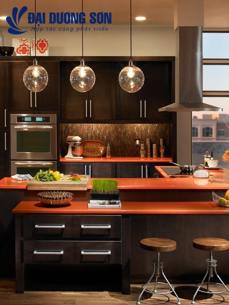 Nhà bếp tối màu toát lên sự tinh tế, sang trọng và cá tính mạnh mẽ. Làm cho căn bếp tối của bạn trở nên phong cách với những nét chấm phá thú vị của màu sắc ấm áp và các yếu tố kim loại.