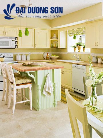 Vui vẻ và nhẹ nhàng, màu vàng là hoàn hảo cho nhà bếp của bạn. Tránh ánh sáng quá chói và sặc sỡ bằng cách pha trộn màu vàng với các màu xanh lam, xanh lục hoặc trắng.