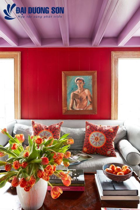Tại sao phải chọn một màu sơn vui nhộn trong khi bạn có thể chọn hai màu? Chúng tôi yêu thích sự kết hợp màu sắc lãng mạn nhưng tươi mới đáng ngạc nhiên giữa màu đỏ và tím của động cơ cứu hỏa trong không gian này của Katie Brown. Những chiếc gối ném thêu bohemian buộc mọi thứ lại với nhau một cách độc đáo. Đó là một cách tuyệt vời khác để tiếp cận quá trình thiết kế phòng khách: Bắt đầu với một cặp gối ném vui nhộn và sau đó kéo hai màu sắc yêu thích của bạn ra để làm nổi bật trên tường và trần nhà.