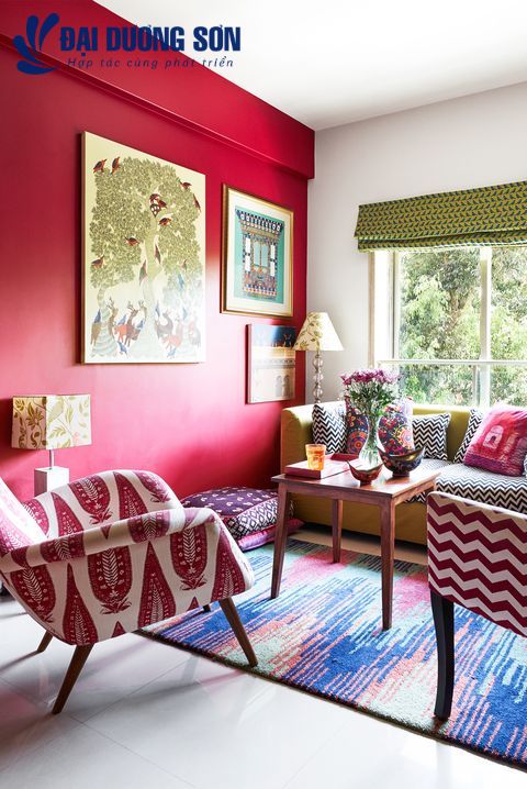 Mô hình được đóng gói và bùng nổ với năng lượng sống động, phòng khách do Krsnaa Mehta thiết kế này sẽ truyền cảm hứng cho bạn không bao giờ kìm chế được khi nhắc đến màu sắc. Để có một tuyên bố đặc biệt táo bạo, hãy sơn một bức tường có điểm nhấn màu đỏ tươi.