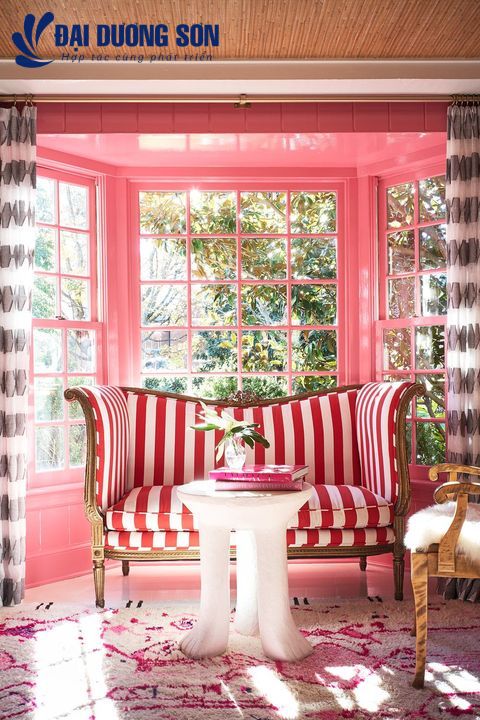 Nhà thiết kế nội thất Janie Molster nói rằng không có cái gọi là quá nhiều màu hồng, và chúng tôi tình cờ đồng ý - đặc biệt là khi nó được làm nổi bật bởi đồ nội thất sọc đỏ và trắng. Nhưng nếu bạn chỉ muốn tô điểm màu sắc tươi sáng, hãy bắt đầu bằng cách sơn một khu vực nhỏ hơn trong nhà của bạn, chẳng hạn như trong ngóc ngách cửa sổ xinh xắn. Nó mang lại một chút ánh sáng lãng mạn mà không có cảm giác như bạn sơn tường bằng bong bóng.