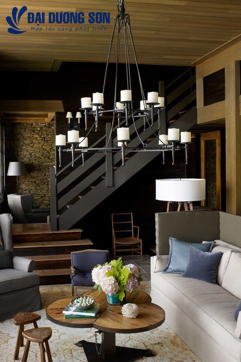 Một ngôi nhà mới trên Hồ Martin của Alabama mang dáng vẻ của một căn nhà gỗ cũ với màu sắc nhẹ nhàng, sạch sẽ và những bức tường bằng gỗ mun. Nhà thiết kế Susan Ferrier đã chọn một chiếc đèn chùm của Phillips Metal Works để tạo cảm giác gần gũi hơn cho phòng khách cao cả.