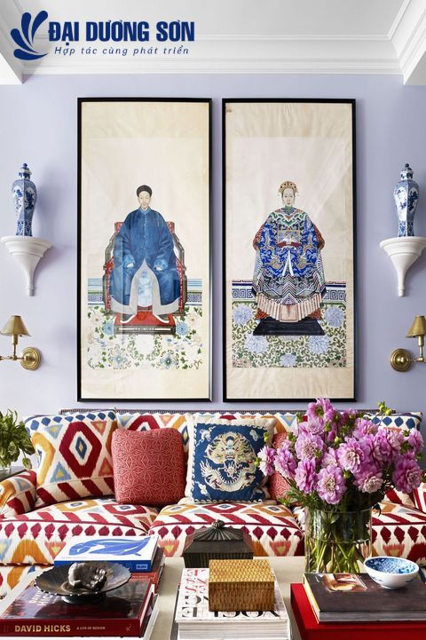 Trong căn hộ Park Avenue đầy màu sắc của Mark D. Sikes, các bức tường trong Misty Lilac của Benjamin Moore giúp tạo nền cho các họa tiết sống động được sử dụng xuyên suốt. Với nhiều hoa văn và màu sắc này, bóng màu tím nhẹ nhàng gần như hoạt động như một màu trung tính.