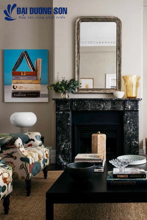 Màu sơn vải mộc phức tạp hơn nhiều so với màu trắng nhưng vẫn nhẹ nhàng và trung tính. Lò sưởi bằng đá cẩm thạch đen neo giữ phòng khách này được thiết kế bởi Arent & Pyke, được nâng cấp hiện đại từ tấm thảm đay, tác phẩm nghệ thuật hiện đại và sáng sủa, và đèn bàn tuyệt đẹp. Và bởi vì những chiếc ghế bành là một hình bóng cổ điển, chúng sẽ tồn tại mãi mãi — bạn có thể bọc lại chúng với các màu sắc và hình in khác nhau trong suốt nhiều năm khi sở thích và phong cách của bạn thay đổi.